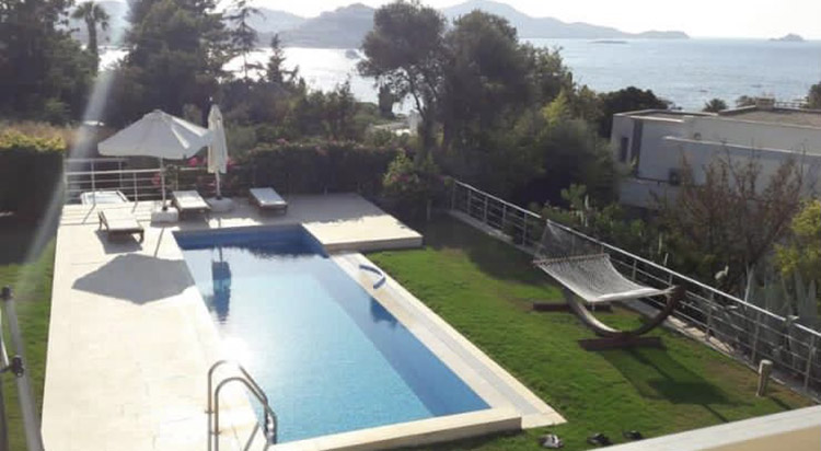 Yalıkavak’ta tam müstakil 3+1 özel havuzlu deniz manzaralı kiralık villa Yalıkavak marinaya araçla 5 dk mesafede sezonda aylık kiralık